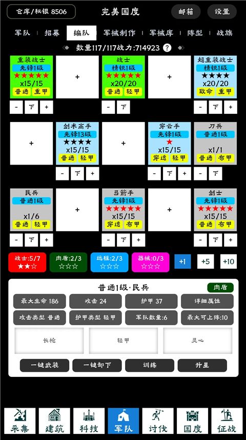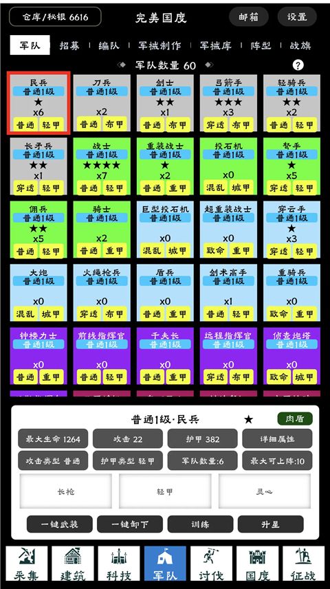 此时科技已经点出了绿兵,可以买绿战士和重战士,白色剑士和弓箭手。