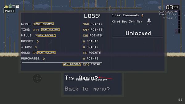 游戏中几乎没有什么剧情,而是以随机选择关卡的方式进行战斗,而玩家只有一条命,输了便全部要重头再来,玩家在战斗会获得经验与装备,游戏过程将会越来越顺利,不过过早刷到BOSS地图的话,那就要全凭玩家的操作了。另外,雨中冒险游戏还有各种成就可以解锁,你可以通过物品和怪物日志解锁游戏的传说成就,也能够让你感受到收集的乐趣,非常有意思。