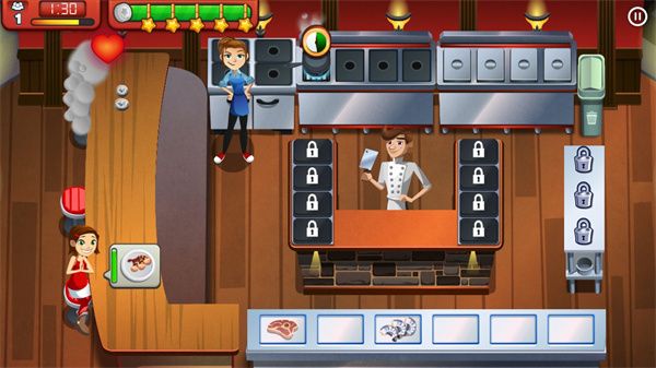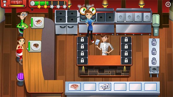 4、提高自己菜谱的质量,玩家在游戏中一定要控制好自己的操作来让自己的人物进行灵活的移动才行。控制好自己的菜谱来进行对客人的满足才行,这个还是比较重要的;