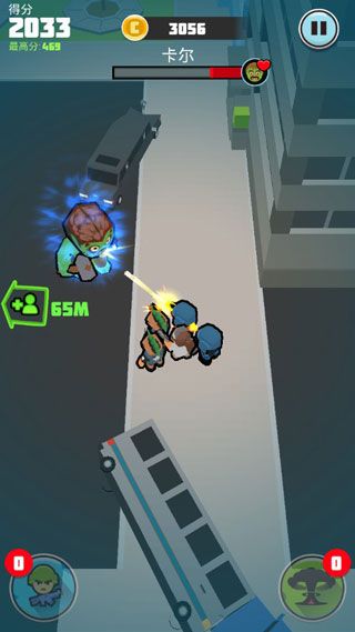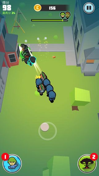 针对游戏的玩法,还是属于比较简单的那种,通过点击开始进行战斗,点击滑动屏幕来实现摇杆移动,英雄会自动射击,且有为你指示幸存者的位置和尸王即将出现的时间,而你只要保持不被团灭即可。