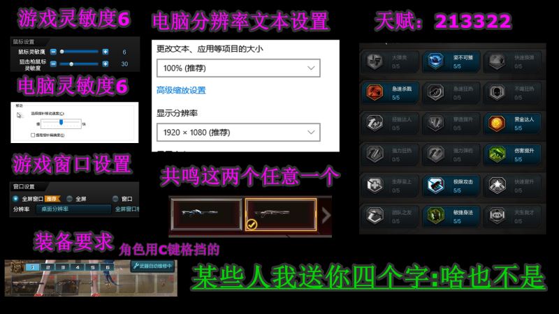 电脑灵敏度6,游戏内灵敏度18,提高指针精准度的沟去掉,游戏需要设置成全屏窗口化运行,游戏内不要改建,默认设置就好了。桌面的文本大小缩放设置成100%,如果之前的文本缩放不是100%的用户,在调整为100%缩放后需要重启计算机已更正