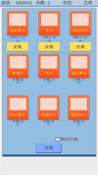 3、卡牌交易:抽到的卡牌除了补充自己的状态以外,还可以进行交易,使用卡牌来换取各种功能卡,或者将各种功能卡出售换钱来继续抽卡。