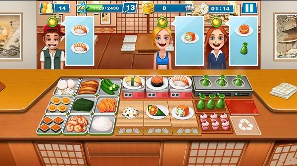 简单在萤幕上拖拽点击,你就可以体会到制作天下美食的快乐,还能学会时间的搭配利用。