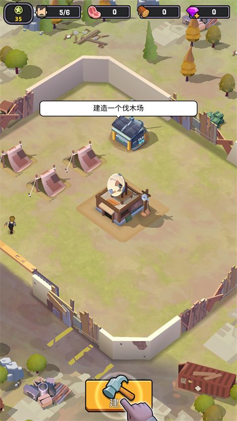 1、进入游戏内我们先来建造基础设施,这里点击下方的建造。