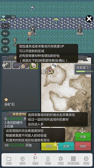 出发冒险时点击难易度按钮,根据难易度不同敌人的经验值和通关时的区域经验值将有变化。