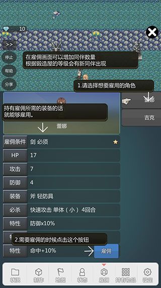 在雇佣画面可以增加同伴数量,根据锻造屋的等级会有新同伴出现。