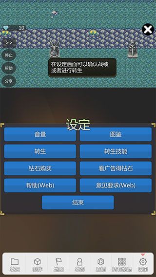 在设定画面可以确认战绩或者进行转生。