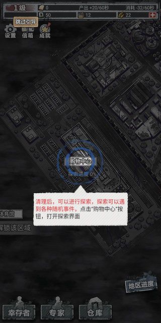 6、清理后,可以进行探索,探索可以遇到各种随机事件,点击“购物中心”按钮,即可打开探索界面。