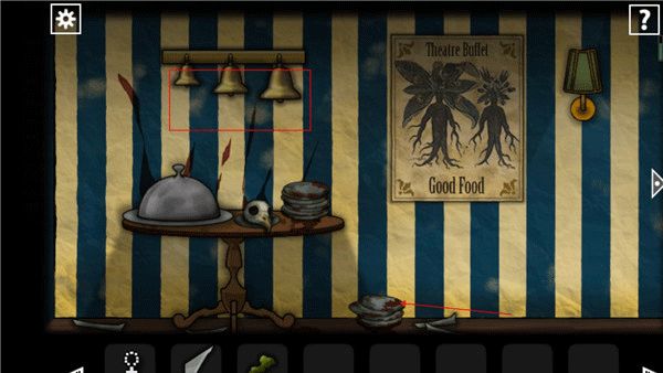 5、在上面这个铃铛根据213112循序点击,之后下面的餐盘就可以打开了,在里面可以获得一个眼球。