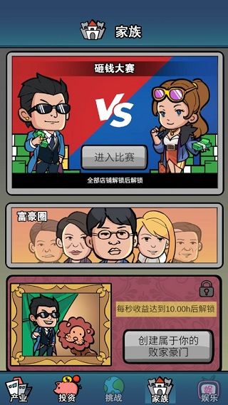 4、慢慢的积累财富成为一代首富,完成所有的竞技挑战内容。