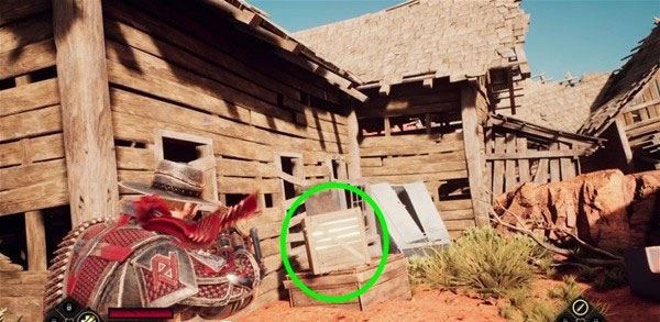 1、穿过木桥,右边有个发光的箱子,打爆它拿到29钱。