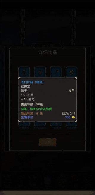3、背包一定要优先开起来,每天5次广告加铜币点一点。要不然挂不了几分钟就塞满了