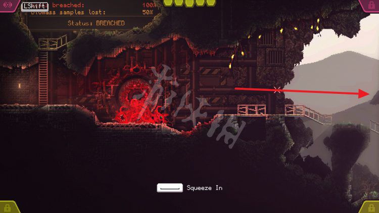 5、在矿井房间内向左移动,将阻挡的物体移开,继续前进直到看似死胡同的房间;从该房间右侧可挤压的管道进入,即可到达军事废料场。