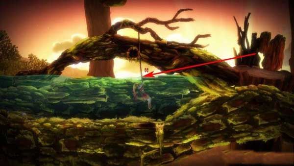 随后女主会在树枝上,这里只要一直往下走即可,没有什么难度。