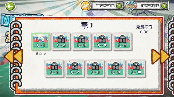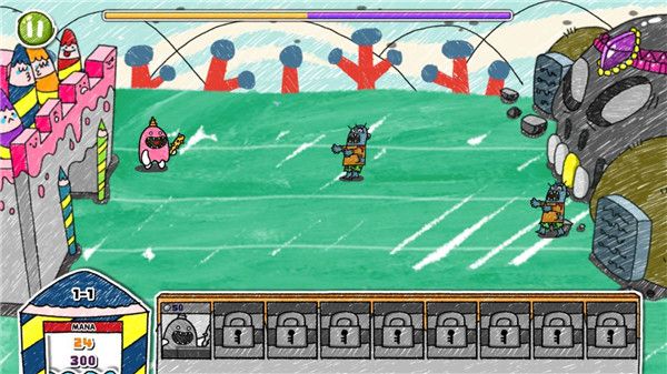 怪物大战僵尸是一款画面搞怪但十分有趣的策略塔防游戏,在画面上采用的是彩色素描的手法,整体风格非常可爱美观,角色的设计也非常Q萌可爱。在玩法上采用的是卡片战斗形势,和植物大战僵尸有点相类似,只不过在这里并不是植物而是一个个可爱的怪兽。游戏中玩家将将以卡片的形式选择召唤不同的作战怪物,消灭源源不断前来的僵尸大军,多线路的战斗火力分布,会让玩家的游戏体验变得更具策略性。同时怪物大战僵尸游戏采用的是三星关卡制,前期会很简单,但是到了后期可能只是可以过关,但是想要获得三星就很难了,在获取三星评定后得到的金币奖励也会非常的丰富。而玩家就可以利用有限的金钱合理布置怪物,打败僵尸获得金钱还可以用来解锁新的强力怪物,也可以用来升级怪物的能力或装备。另外,游戏中还有独特的怪物战斗养成玩法,玩家可以在每次挑战结束后,将收集到的金币用于怪物能力升级,或者是购买更多的战斗贴片,将合适的贴片放置在怪物身上可以从中获取更加的战斗加成。