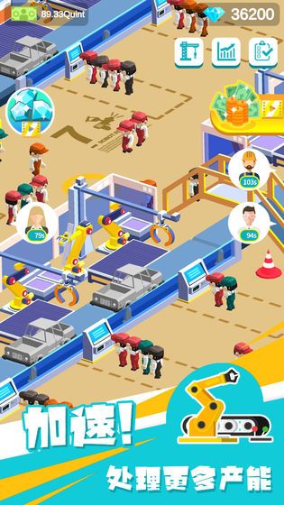 随着发展,您将拥有各种新型机器来加工新的汽车部件,为了获取加速解锁新设备,请对设备进行升级。