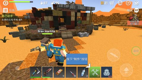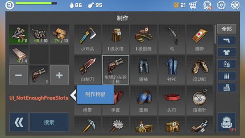 终于可以有一把远程的武器了首先点击制作然后按生锈的手枪,就可以制作 。但是
