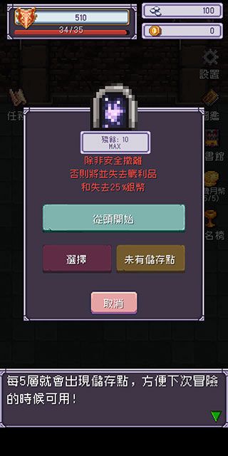 5、每5层就会出现储存点,方便下次冒险的时候可以用,现在我们点击【从头开始】。