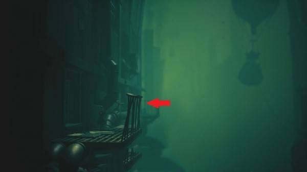 使用两个保险丝恢复电梯供电后不久来到室外区域,在这里不要向下走,先向上走,穿过一扇窗户可以找到玩偶。