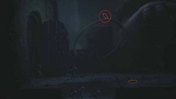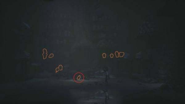 在被巨大婴儿抓住后,掉落到一个黑暗区域。在这里先向左走,穿过墙上的一个洞口即可找到玩偶。