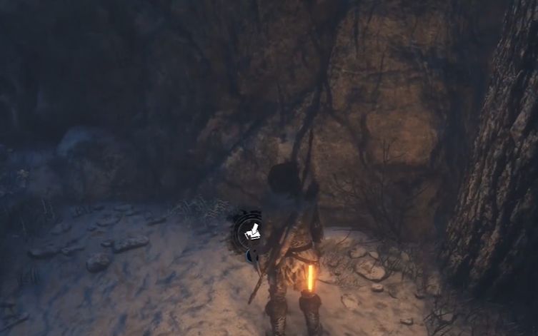 在敌人营地附近,前往熊洞的崖底。