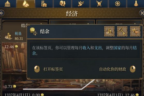 游戏初期,玩家会面临诸多事务,不妨从经济中的结余面板入手。