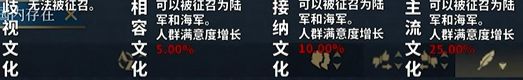 不过,每个国家只能有一个主流文化,其他文化最多达到接纳文化的银等级。