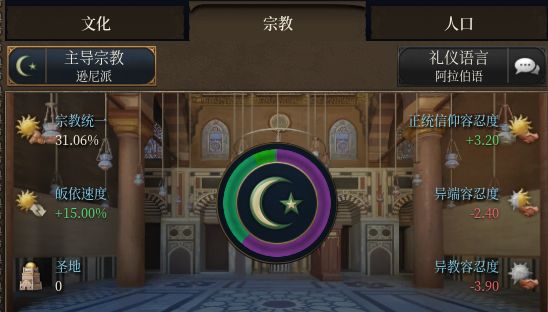 宗教和文化在开局时可操作的地方不多,但专注于传教和洗文化十分必要,因为这两者往往是引发叛乱的主要因素。