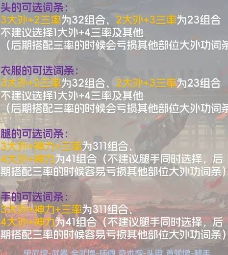 各部位词条规划