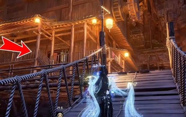 2. 触发任务:传送至不见山「墨城入山口界碑」,向左走找到两条木桥,从左侧木桥跳下后上台阶,窃 听屋内张槊与阿兰的对话,触发任务。