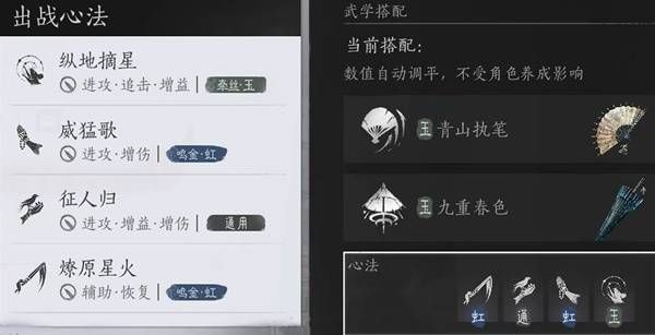 武学、心法如下图搭配