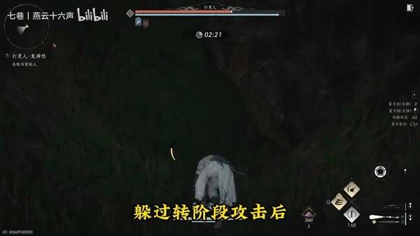 当BOSS的血量被消耗的四分之三以下时,真气会瞬间恢复,我们在BOSS真气回复后,立刻爬上后面树根的最高点位置,躲避BOSS的转阶段攻击