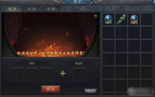合成规则:需要三个相同类型的神器材料进行锻造,根据放入的材料祝福值总和随机产出不同品质的神器。品质分为精良、稀有、神圣、至尊、玄黄,品质越好基础属性越高,需要的祝福点数越高,可以加幸运符来提高产出品质。材料获得方式有商城购买、活动奖励、boss掉落。