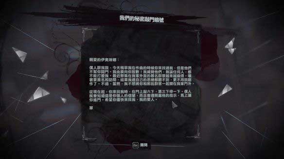 然后来到先去美容院老板的家,就在入口铁门的右侧,美容院老板在二楼,可以打晕她,不然她会出去呼叫守卫。在房间里寻找线索,有一条是给单云的纸条,约定了秘密敲门暗号。