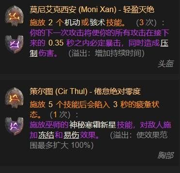 衣服力量+符文,符文的选择是莫尼,艾克西安,因为突刺打击是机动技能,所以可以常驻一部分压制。另外符文可以选择策尔图,用冻结+易伤来增伤和减伤,以及打boss的瘫痪值。还有个选择是,策尔瓦特,可以用悚然衰老的斩杀+减伤来,同样,还可以选择全技能+3. 看看自己哪个舒服用哪个。