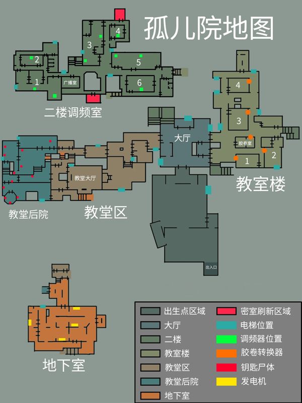 在逃生试炼的游戏中每一个地图的地形都是不一样的,只有很好的掌握了地形才可以帮助玩家更加简单的完成游戏中的冒险,其中孤儿院作为很多小伙伴们喜欢的地图,想要熟悉也是不容易的。