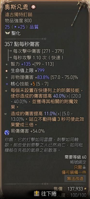 有特别选择撑高易伤的伤害,因为圣化在各部位加了很多乘法的威能,反而感觉A伤有点不太够,所以A伤大多累积集中在易伤的伤害,因为有凛霜天命的传奇节点和撕裂刀刃的威能,所以比较容易撑高易伤数值。
