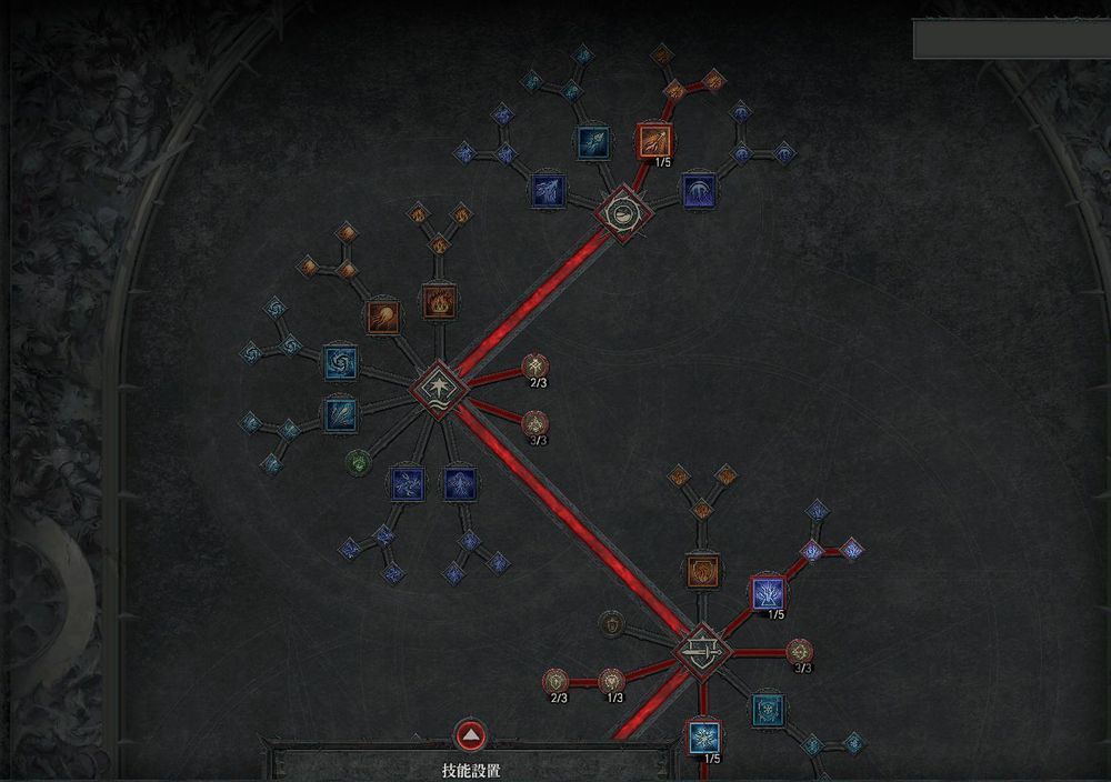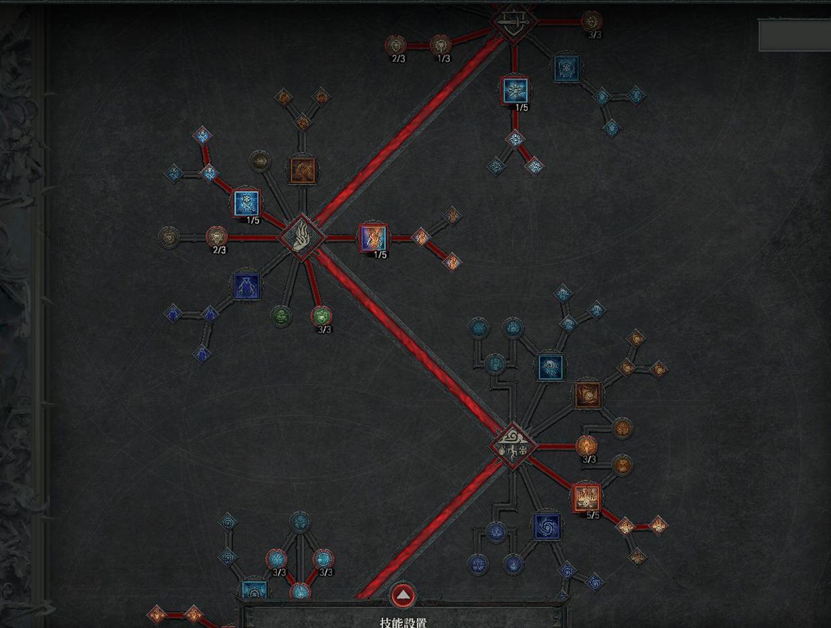 放冰刃是为了加攻速及让角色有两招不同属性的技能来切换,因为只有一直用火系的技能,有时不会刷新塔拉夏的增伤秒数,闪电长茅基本没什么在使用,没东西按的时候偶而放一下,怪物技能只怕头上有一把剑插下来的那招、爆裂、一团银黑色的混沌球,其它的伤害应该都可以站着不太需要动,因为都还会有可喝水的机会;打一般地图时会把附魔火焰弹改成火球,清怪会变超快。