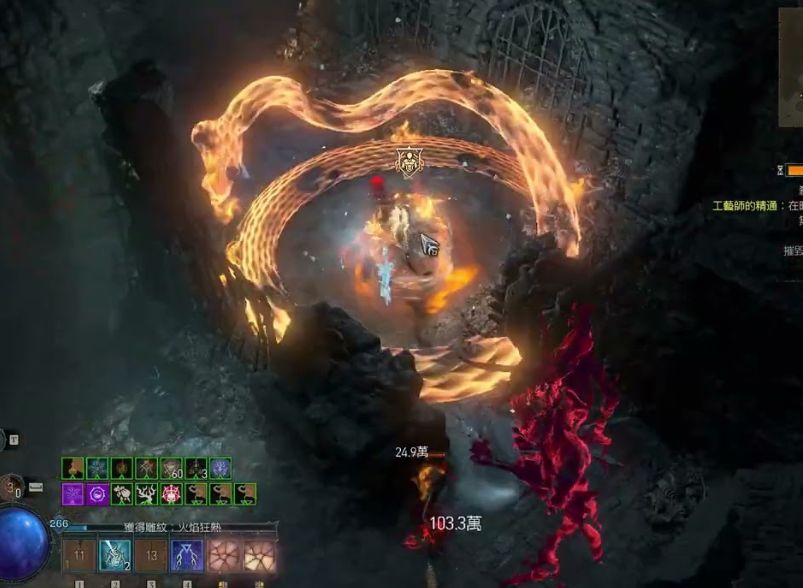 在暗黑破坏神4s11赛季中,火墙法师的实战打法是大量拖怪后一直放火墙和绝招,让怪物大致固定在某个区域,怪物处在燃烧状态久了之后,就会开始大量扣血,配合上新赛季的圣化就是如虎添翼。