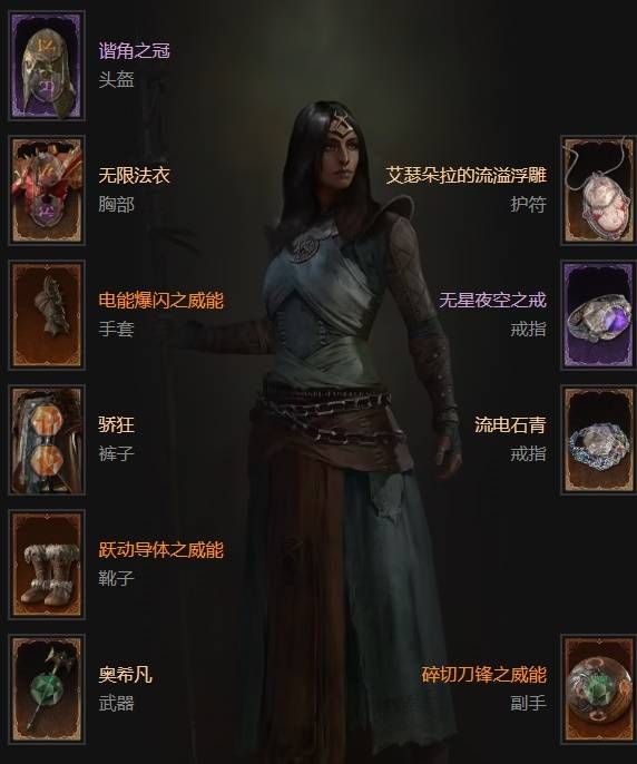 本赛季传送附魔CD固定为4秒无法减少,退而选择减少传送本体CD,配合电能满溢关键被动快速刷新传送技能的冷却时间,以实现在怪堆内高频传送,因此衣服部位选择无限法衣(有高额传送冷却缩减词条)鞋子选择跃动导体威能(减少传送CD5秒)