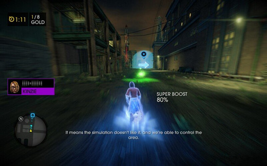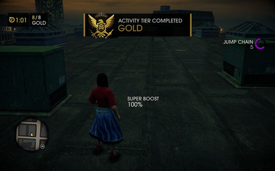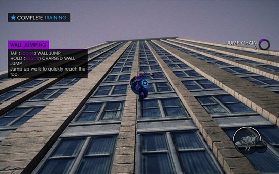 超能力解锁后需要打开菜单来升级然后进入训练关,按住空格可以搞跳,在墙壁连续按跳可以爬墙和虐杀原型远点类似。然后是冲刺关,按住SHIFT加速,然后吃到绿球根据箭头方向走即可,最后需要爬墙