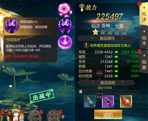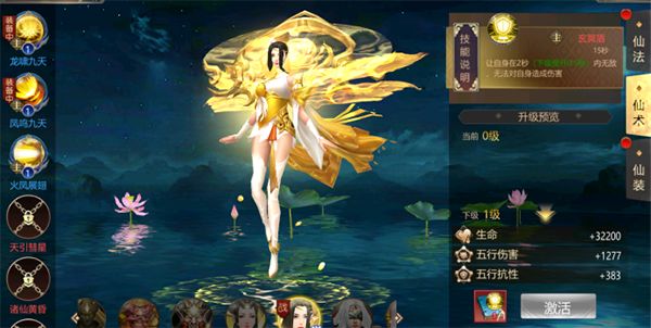 同样玩家可以在仙术界面预览所有的仙法技能且进行对应的提升