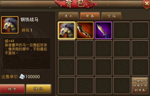 今天我们来看看最近新出的名驹系统,在商店刷新出各种马可以购买后通过放生马,有一定几率获得一匹小马驹,小马驹通过饲料喂养后升级会随机长成各种名驹,目前我所知道老爷们养成的有赤兔,里飞沙,紫骍,爱幻想的马,的卢,爪黄飞电,白龙,绝影,白鹤,玉追,小老爷们要是有其他类型的马不妨发出来一起分享下呀。