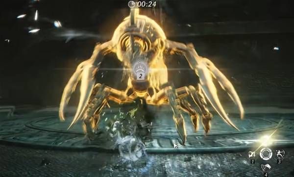 直到蝎子开始捶地,前三下不要靠近,出现红光后靠近,不要看红光,观察双手,下砸瞬间卸势,卸势成功后,会进入决斗动画,打破蝎子护盾造成伤害。