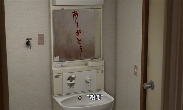 8、在第三次时我们会发现端倪,镜子上都是血,然后还会在这时候接到一个电话,提示眼前的北山是假的,原名叫森本。