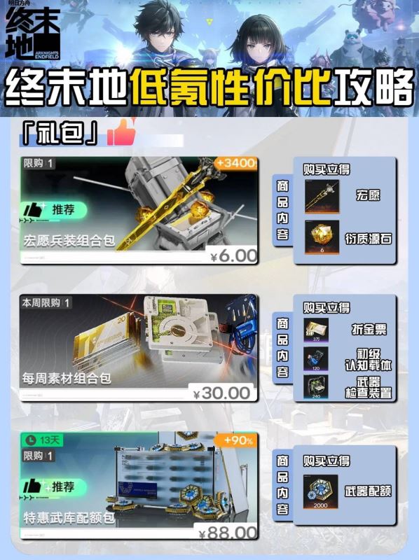 明日方舟终末地低氪玩家怎么选择礼包 低氪性价比攻略