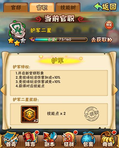 伴随少年们官职晋升获得的技能点,可以点亮官邸系统中的技能树,从而大幅度加成武将属性!