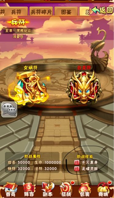 ①助战:从金色阶段就开启的系统,金色可助战一个红色兵符,暗金助战一金一红,助战后可以使用其技能