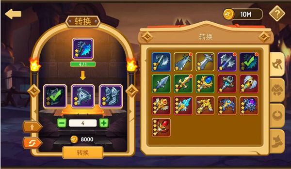 装备转换是锻造之家的另一重要功能,可消耗一定数量金币,将一件装备转换为相同级别的其他部位的装备。