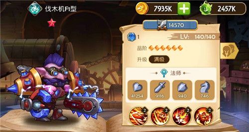 伐木机是个高伤害的DPS法师,最主要的特点就是流血,每回合的额外伤害很高,并且血量低于50%时直接暴走,闪避、攻击提升30%。